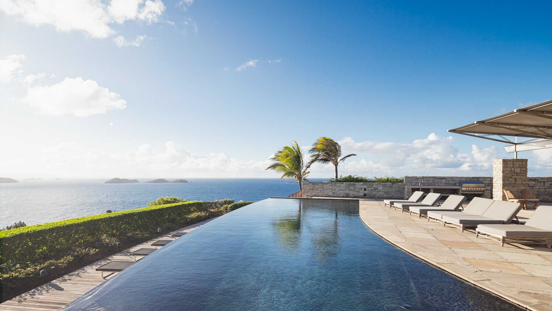 Située dans un domaine privé à Pointe-Milou, cette villa luxueuse vous offre une vue imprenable sur la baie de Lorient et les îles voisines de Tortue et Frégate. Son architecture artistique, influencée par le mouvement American Arts & Crafts, se déploie sur deux niveaux avec une vue panoramique comme pièce maîtresse. Les couchers de soleil sont parmi les plus beaux de St-Barths grâce à l'exposition est-ouest. À l'intérieur, le vaste séjour est orné de pierres claires, de parquet et de boiseries sous un magnifique plafond mansardé. La décoration de cette maison de luxe ne laisse aucun détail au hasard, avec des canapés moelleux, des textiles confortables et des luminaires contemporains. Les larges baies vitrées permettent à la lumière et à la brise de pénétrer dans cet espace de vie spacieux. La cuisine entièrement équipée donne sur la salle à manger intérieure, qui offre un contraste élégant avec les tons chocolat et noir des pierres murales. À l'extérieur, profitez de la vue magique tout au long de la journée. La piscine chauffée à débordement est un véritable spectacle, offrant des vues imprenables sur l'île Tortue et les couchers de soleil. Détendez-vous autour d'un verre ou d'un repas convivial sous les étoiles à la grande table à manger. La terrasse couverte et les chaises longues près de la piscine offrent également un endroit idéal pour se détendre et profiter du soleil. La villa dispose de cinq grandes chambres, dont trois principales situées près du séjour et de la piscine, et deux à l'étage inférieur aménagé comme un loft ultra contemporain. Chaque chambre est équipée d'un lit king size et d'une salle de bain attenante. Vous trouverez également une salle de sport, une salle de massage climatisée et un billard extérieur. Cette villa luxueuse est parfaite pour un séjour en famille ou entre amis, offrant des espaces ombragés et privés pour une détente et un confort ultimes.