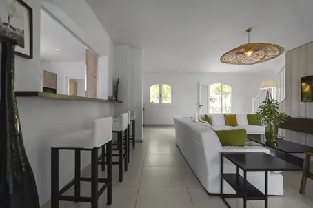 La villa se distingue par ses cinq grandes suites, chacune équipée de sa propre salle d’eau, dont certaines avec douches extérieures, offrant un confort absolu et une intimité rare. Les espaces de vie sont généreux, lumineux et ouverts sur l’extérieur, favorisant une parfaite intégration avec la nature environnante.