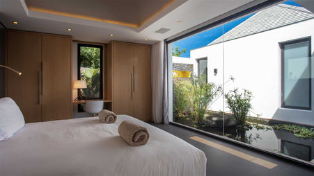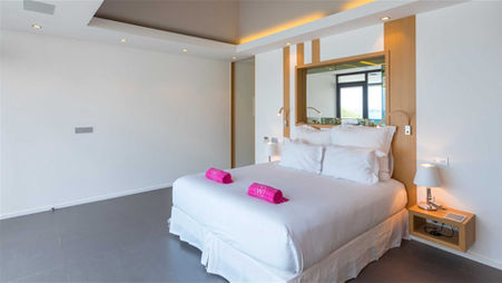 Située sur une colline de Colombier, cette magnifique villa de location est une propriété luxueuse offrant une vue panoramique sur la baie de Flamands et l'île de Bonhomme. Avec son design contemporain et épuré, cette propriété construite sur deux niveaux combine à la perfection le calme de l'endroit avec la beauté exclusive de St-Barths. Le grand séjour chaleureux, ouvert sur une terrasse, est décoré avec goût et comporte même un piano à queue pour une touche de luxe supplémentaire. Vous pourrez également profiter d'un écran de projection moderne pour des soirées cinéma. La cuisine entièrement équipée vous permettra de préparer des repas délicieux, ou bien vous pourrez faire appel à un chef privé pour des dîners entre amis. Le bar à petit déjeuner est idéal pour partager des moments de complicité. La salle à manger offre une vue fantastique et peut accueillir jusqu'à 18 personnes autour d'une grande table design. À l'extérieur, vous trouverez une superbe piscine chauffée entourée de vastes plages, de coins salon et de chaises longues parfaitement orientées pour profiter du soleil de Saint-Barths. Un jacuzzi est également à votre disposition pour des moments de détente face à la vue imprenable sur la baie. La villa dispose de cinq grandes chambres climatisées, avec des lits king size et des salles de bains privatives. Quatre des chambres offrent une vue magnifique sur l'océan, tandis que la cinquième est située à l'arrière du salon. Une salle de sport climatisée avec vue sur la mer complète parfaitement cette villa de luxe exclusive. Cette propriété est un véritable havre de paix et de tranquillité, idéal pour ceux qui recherchent le confort et la déconnexion totale lors de vacances inoubliables dans les Caraïbes.
