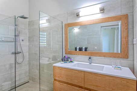 Cette charmante villa est située en haut d'une falaise, offrant une vue imprenable sur l'océan et l'île voisine d'Anguilla. Récemment rénovée, elle dispose de trois chambres king-size avec salle de bains privative, dont une dans son propre cottage privé avec une mini cuisine. Les chambres sont décorées dans des tons neutres et apaisants, avec une télévision grand écran et une salle de bains moderne avec douche à effet pluie. Le salon est meublé avec des meubles en bois naturel et en lin blanc, tandis que la cuisine est impeccable avec des armoires blanches, des appareils en acier inoxydable et des comptoirs en marbre. Une véranda s'étend sur toute la longueur de la villa, offrant une vue à couper le souffle sur l'océan et des espaces couverts pour vivre et manger en plein air. Des marches mènent à une terrasse ensoleillée avec une piscine et des chaises longues confortables, idéale pour se détendre et profiter du soleil. Nichée sur près de cinq acres de terrain, cette villa offre une intimité totale dans un cadre magnifique et paisible. Les services tels que le ménage quotidien, le linge de maison, les serviettes de plage et le service de conciergerie haut de gamme sont inclus pour rendre votre séjour plus confortable. Les activités nautiques et terrestres sont également à proximité, vous permettant de profiter pleinement de tout ce que l'île de Saint-Martin a à offrir. La villa est un véritable havre de paix pour des vacances inoubliables.